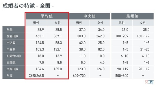 ちなみに、2022年度IBJ成婚白書では中央値で検証していますが、ここでは平均値で考えていきます。