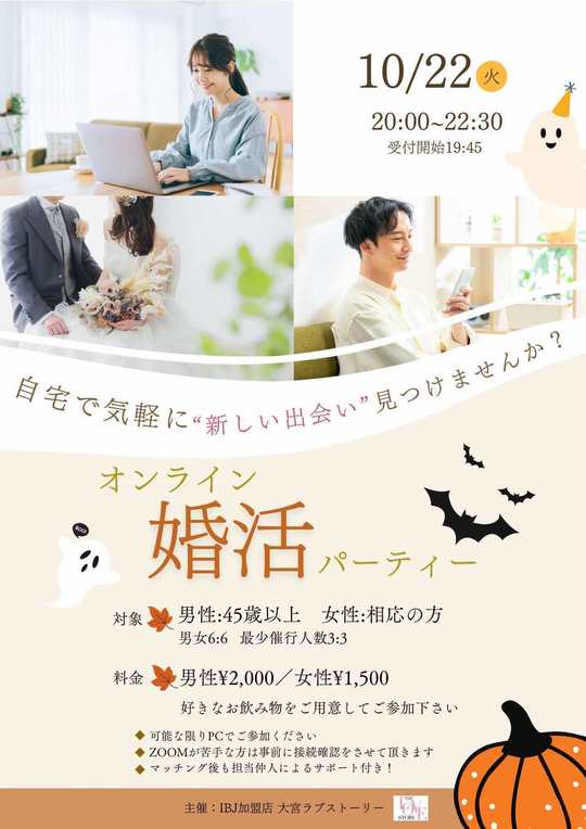 今回はオンラインでの開催。毎回、すぐにお席が埋まってしまう人気の婚活パーティーです。